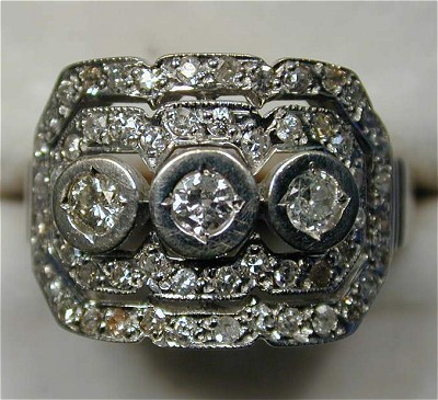 18ct white gold art deco style diamond set ring.  Diamond weight approx 0.83 carat.  Size O.