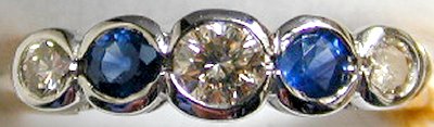 9ct yellow & white gold modern sapphire & diamond set 1/2 eternity ring.  Size L and size O.