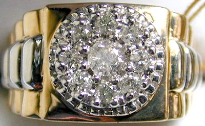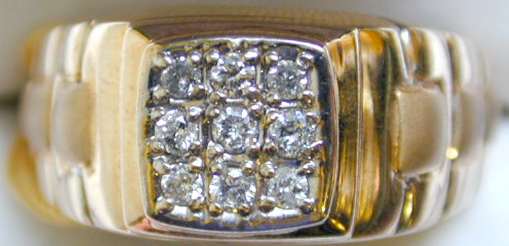 9ct yellow and white gold gents modern 'Rolex' style diamond set ring.  Size N1/2.  Diamond weight approx 0.5 carat.