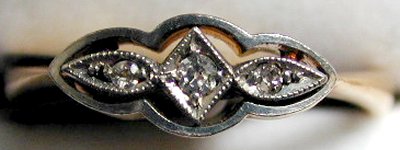 9ct gold & platinum 1920's diamond set ring.  Size J1/2.