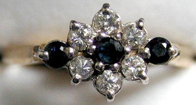 9ct sapphire & diamond cluster ring set with 13 diamonds.