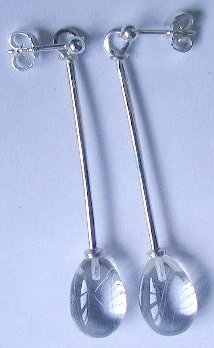 Georg Jensen heavy solid silver designer earrings with rock crystal drops.